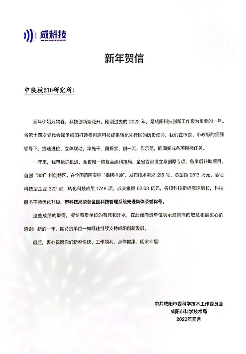 1月13日,在新春佳节来临之际,咸阳市科技局副局长陈振宁一行来到核昌公司开展春节前慰问活动,为公司职工送去科技局的关怀与节日的祝福。核昌公司党委副书记、总经理李伟,副总经理、总工程师白宁博及相关部门负责人...