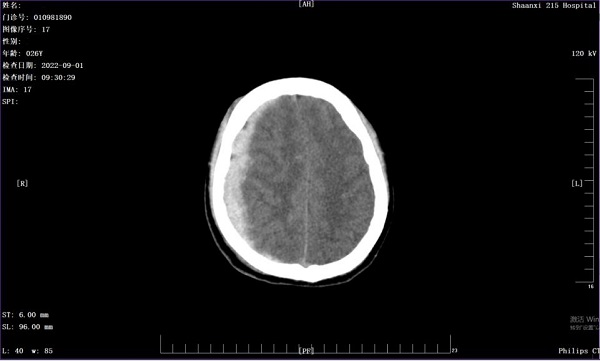 三个月前,26岁的张先生不慎被汽车撞倒,立即陷入昏迷,急诊送入二一五医院救治。入院后CT检查发现,张先生的右侧硬膜下大量出血,诊断为急性右侧硬膜下脑出血伴脑疝形成,病情十分危重。 (入院急诊头颅CT) 对于...