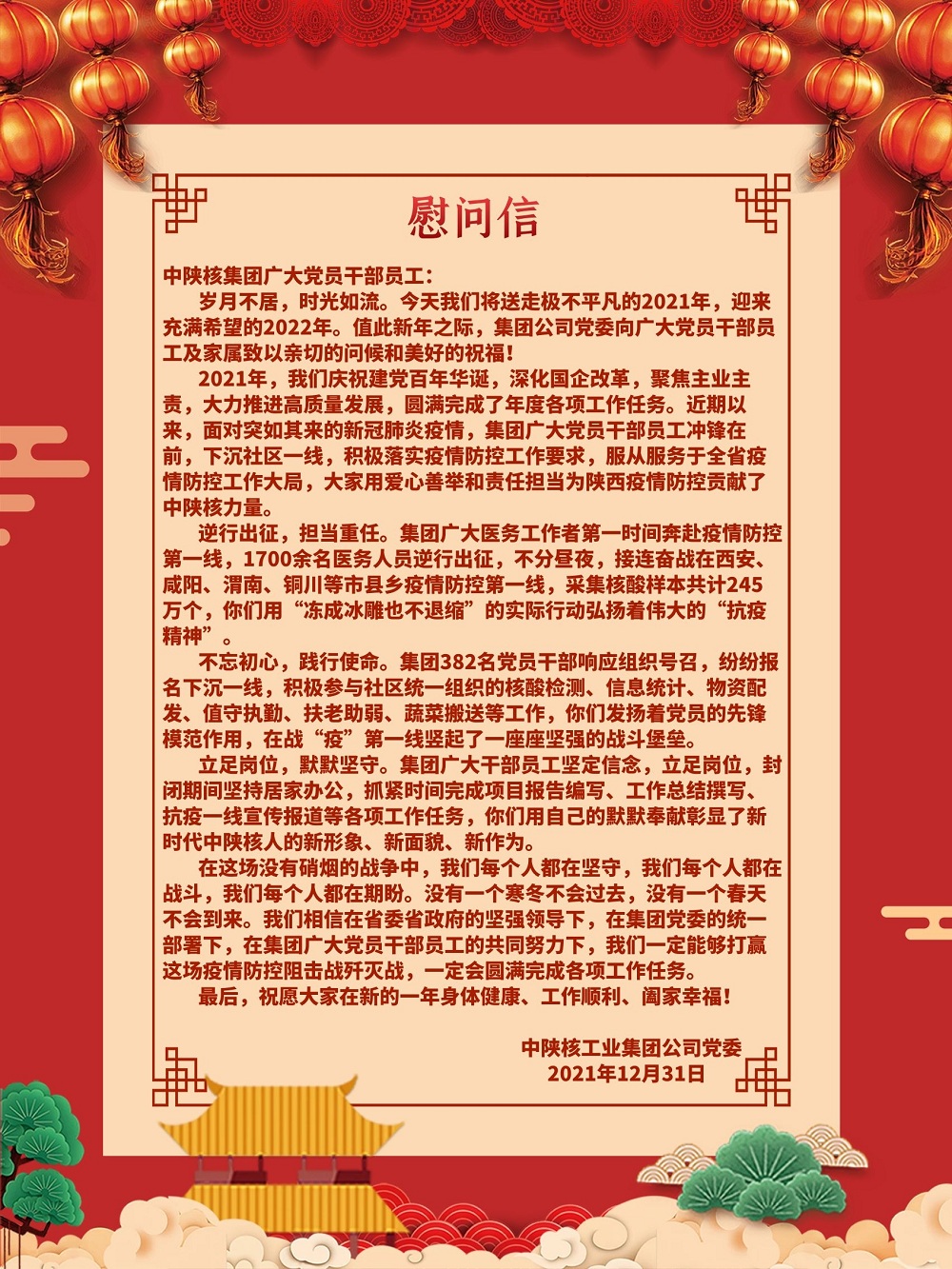 12月28日晚,集团公司收到省委组织部关于省直机关和企事业单位干部下沉西安基层一线支持疫情防控工作的紧急通知后,集团党委响应号召,闻令而动,连夜紧急部署,组织报名,组建队伍,对接工作。广大党员干部踊跃报名...